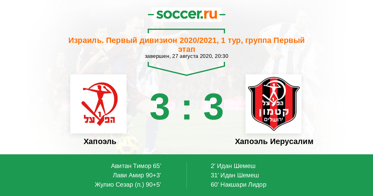 Хапоэль - Хапоэль Иерусалим: обзор матча 27 августа 2020
