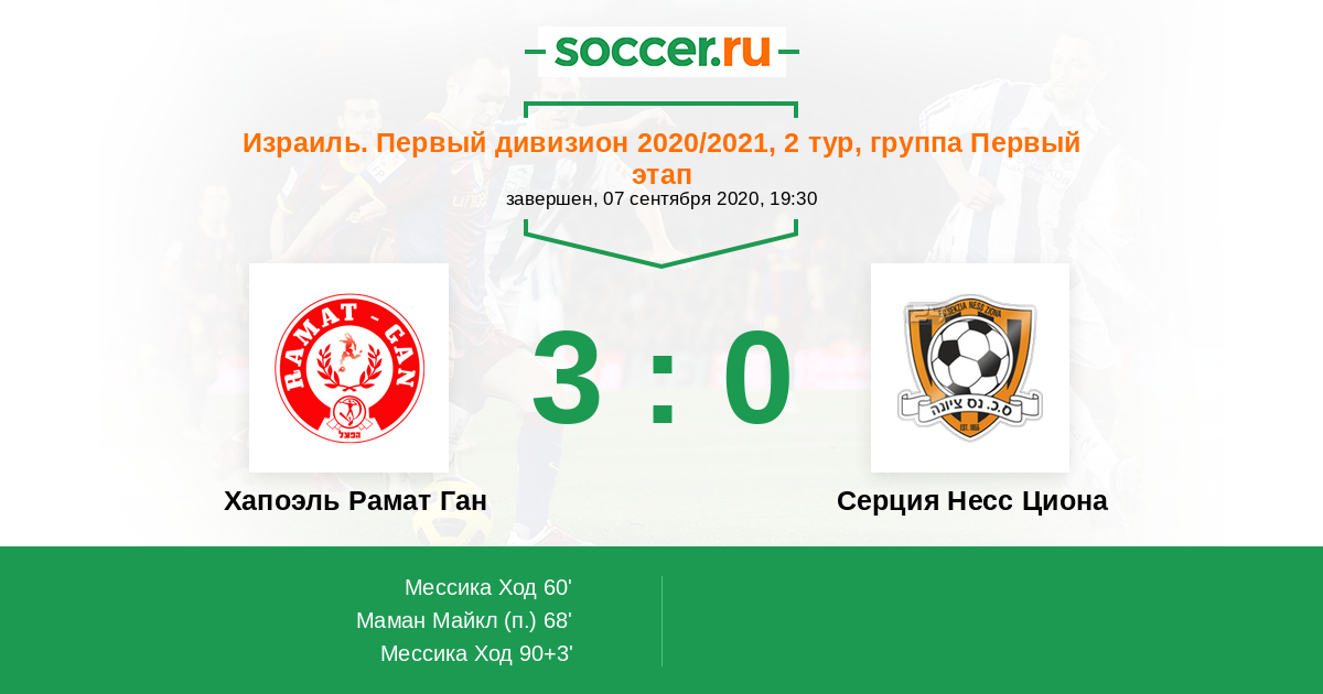 Хапоэль Рамат Ган - Серция Несс Циона: обзор матча 7 сентября 2020