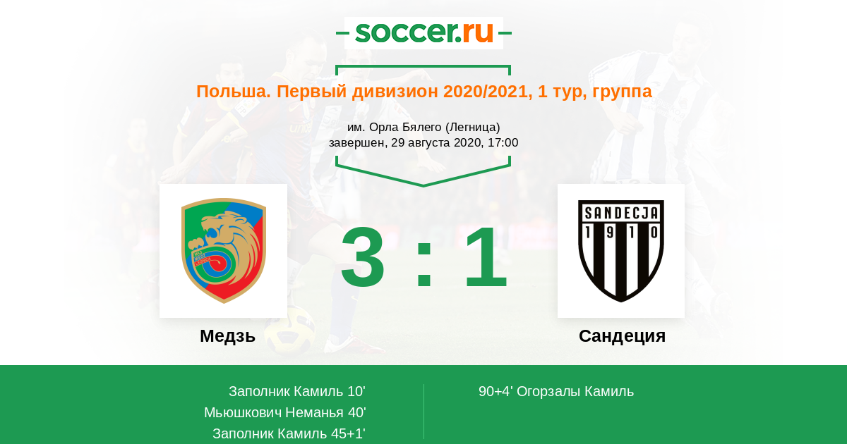 Медзь - Сандеция: обзор матча 29 августа 2020