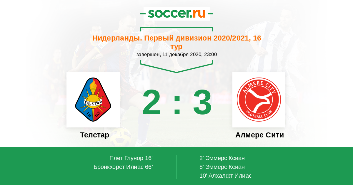 Телстар - Алмере Сити: обзор матча 11 декабря 2020
