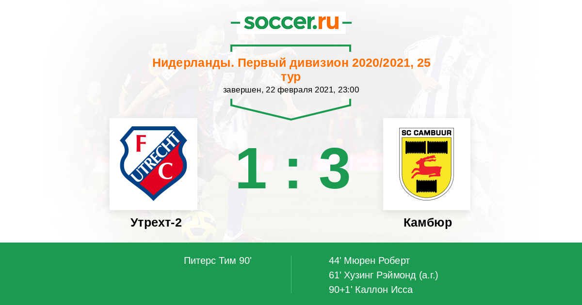 Утрехт-2 - Камбюр: обзор матча 22 февраля 2021