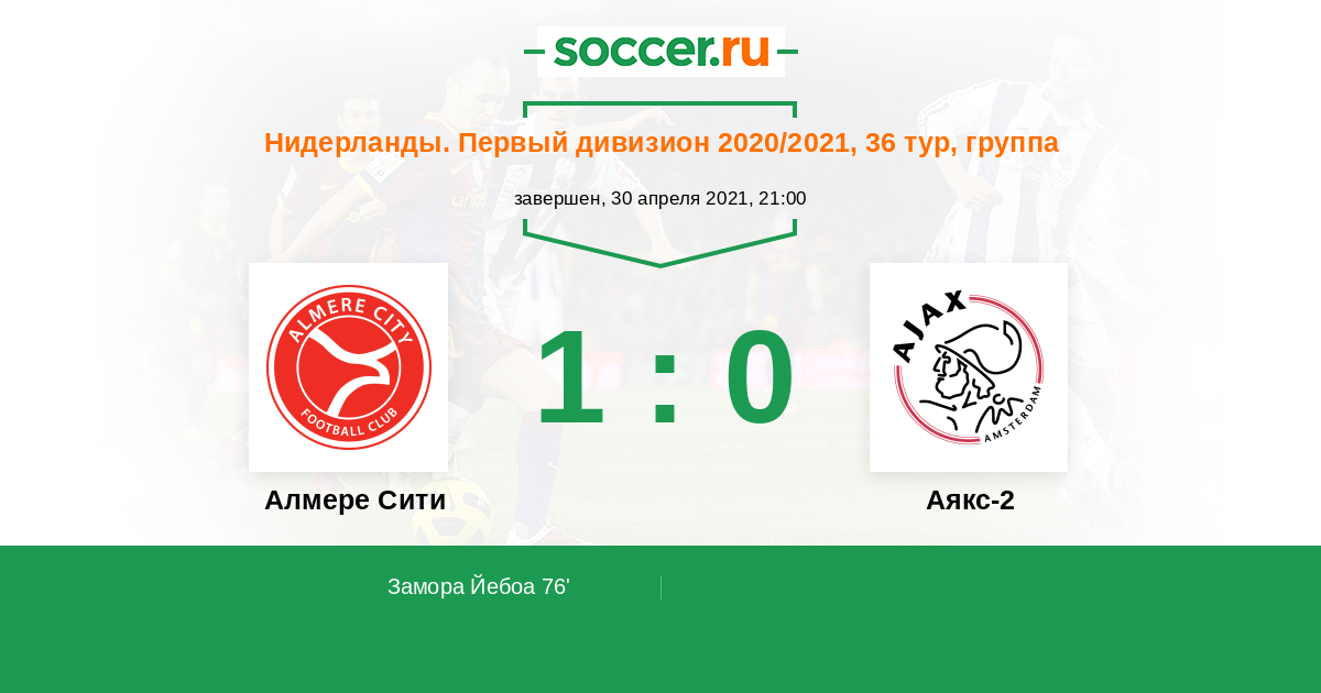Алмере Сити - Аякс-2: обзор матча 30 апреля 2021