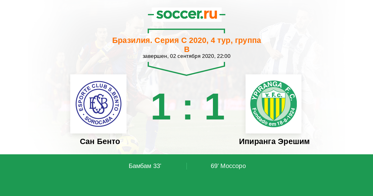 Сан Бенто - Ипиранга Эрешим: обзор матча 2 сентября 2020