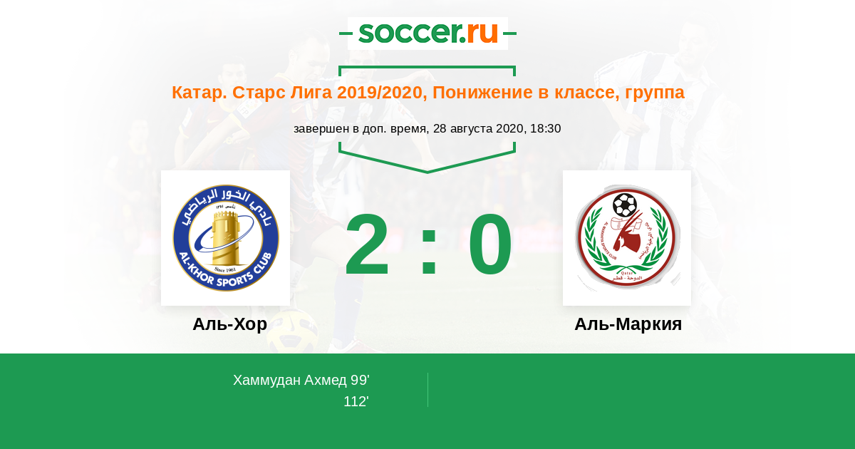 Аль-Хор - Аль-Маркия: обзор матча 28 августа 2020