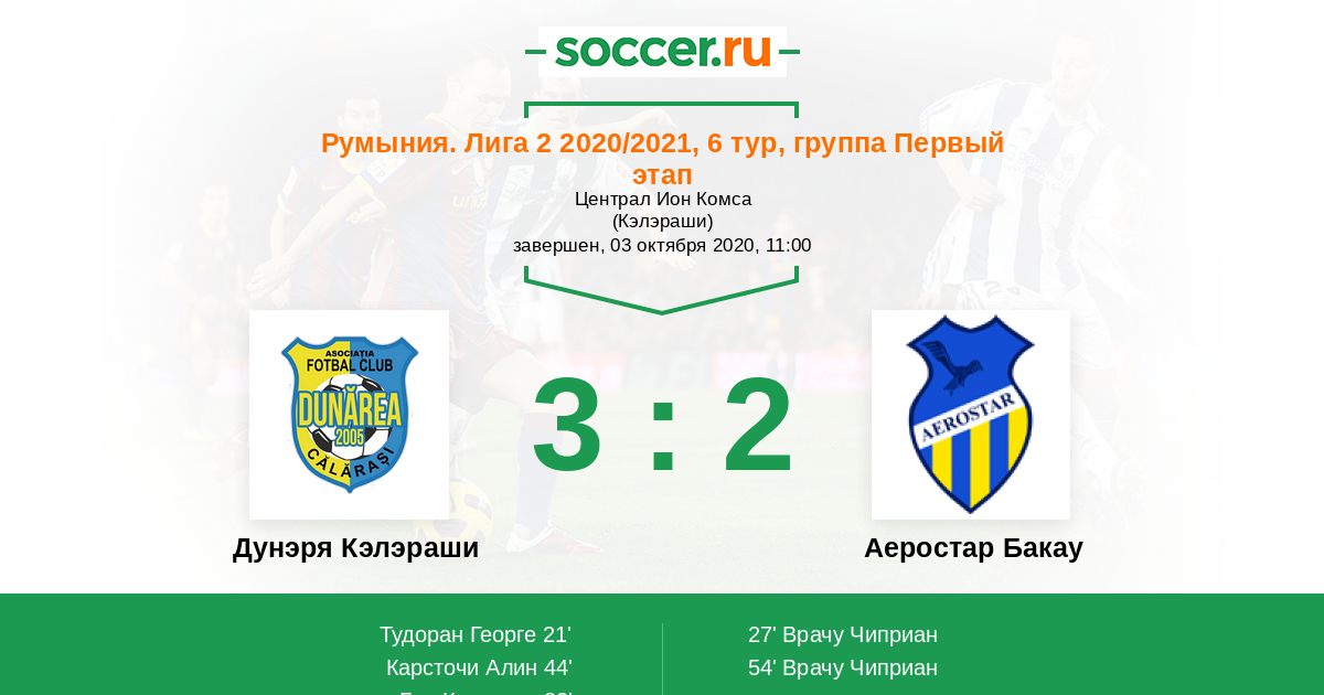 Дунэря Кэлэраши - Аеростар Бакау: обзор матча 3 октября 2020