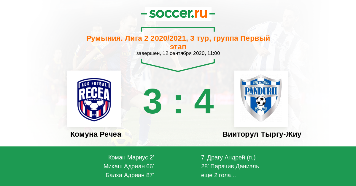 Комуна Речеа - Вииторул Тыргу-Жиу: обзор матча 12 сентября 2020
