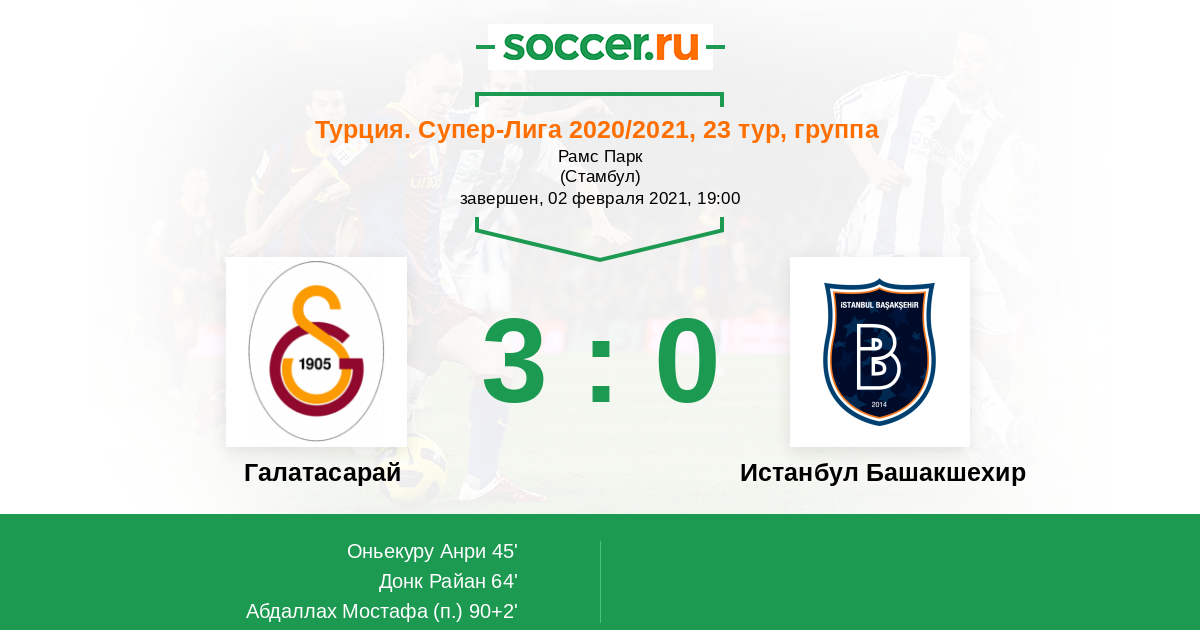 Галатасарай - Истанбул Башакшехир: обзор матча 2 февраля 2021