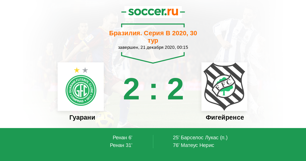Гуарани - Фигейренсе: обзор матча 21 декабря 2020
