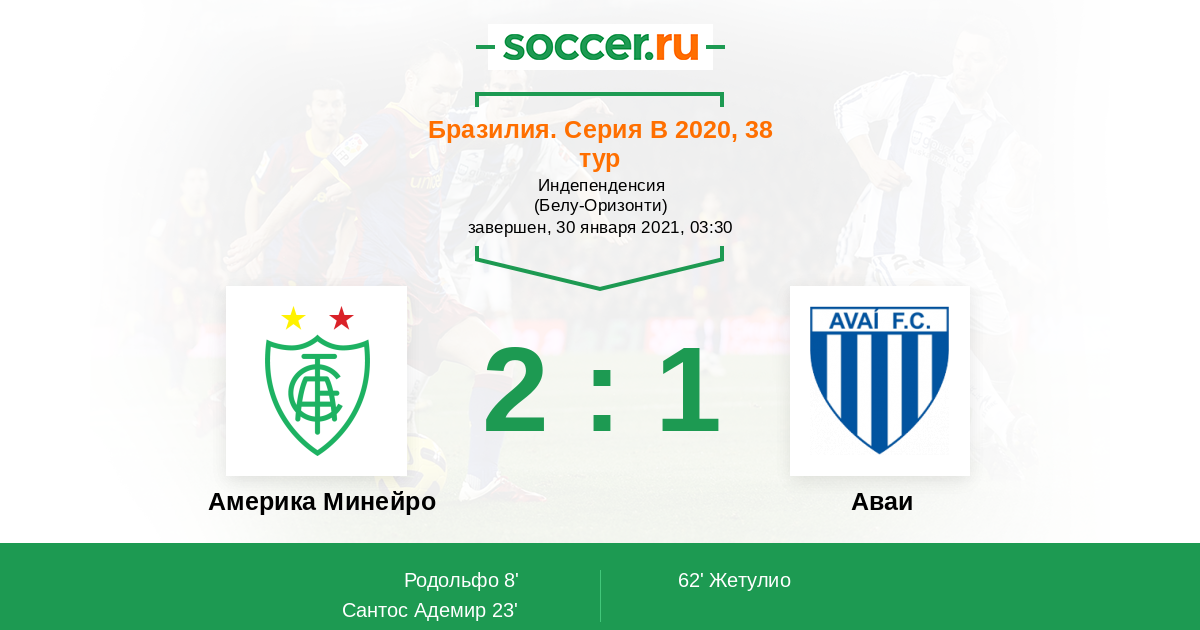 Америка Минейро - Аваи: обзор матча 30 января 2021