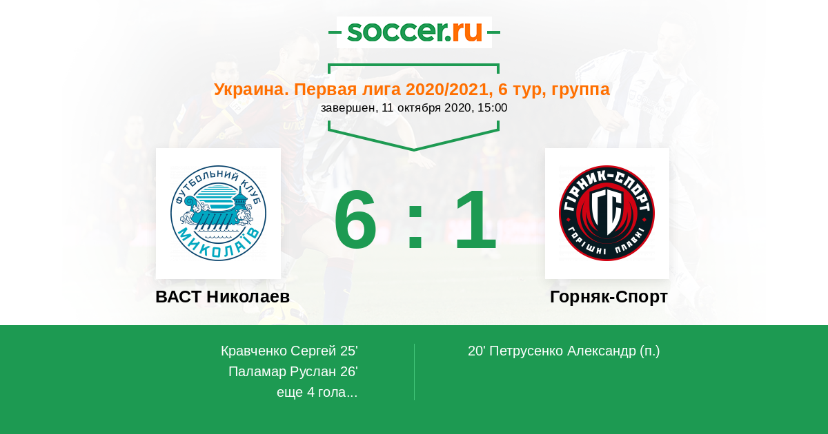 ВАСТ Николаев - Горняк-Спорт: обзор матча 11 октября 2020
