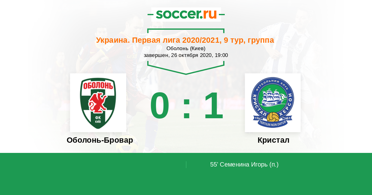 Оболонь-Бровар - Кристал: обзор матча 26 октября 2020