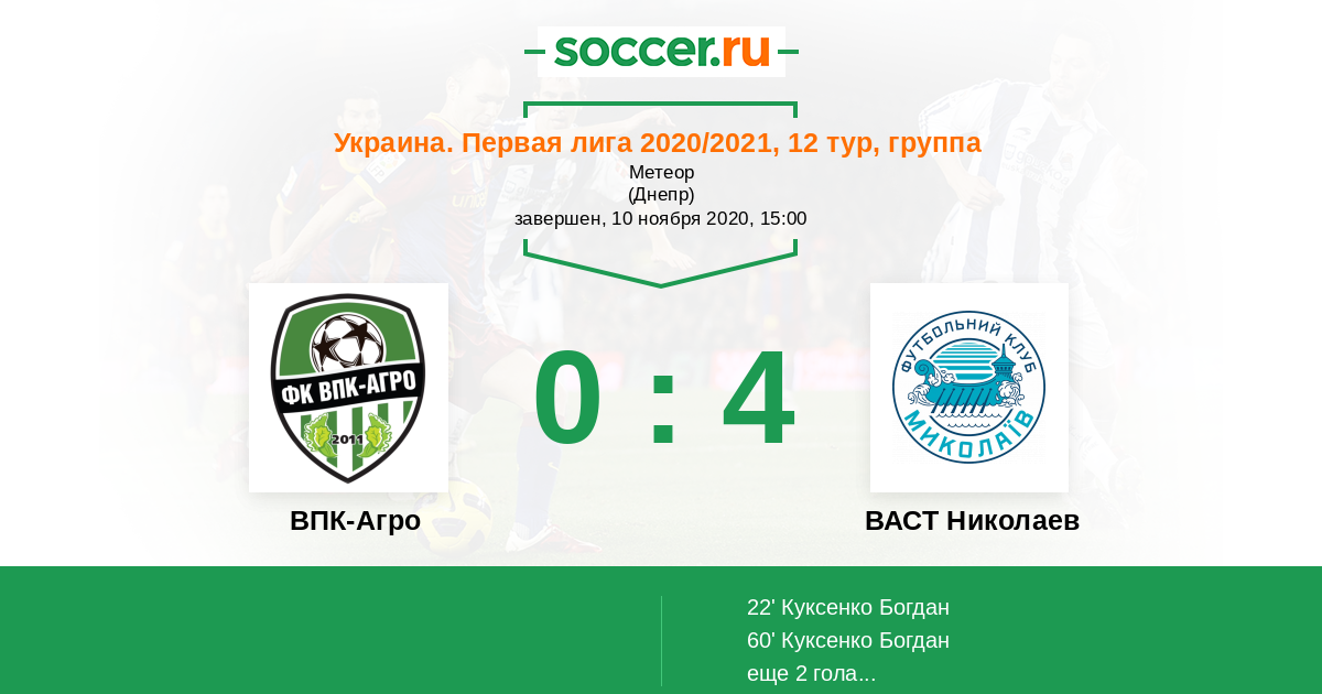 ВПК-Агро - ВАСТ Николаев: обзор матча 10 ноября 2020