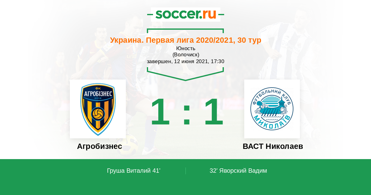 Агробизнес - ВАСТ Николаев: обзор матча 12 июня 2021