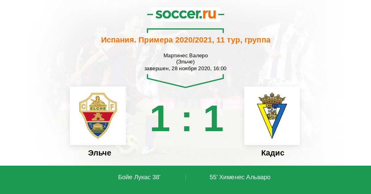 Эльче - Кадис: обзор матча 28 ноября 2020