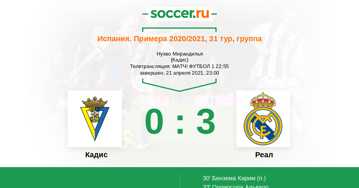 Кадис - Реал: обзор матча 21 апреля 2021