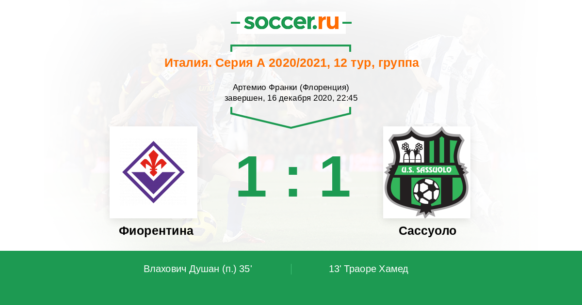 Фиорентина - Сассуоло: обзор матча 16 декабря 2020