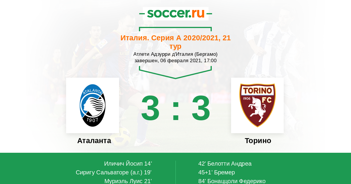Аталанта - Торино: обзор матча 6 февраля 2021