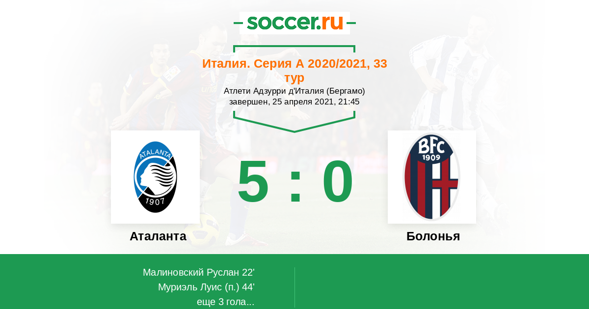 Аталанта - Болонья: обзор матча 25 апреля 2021