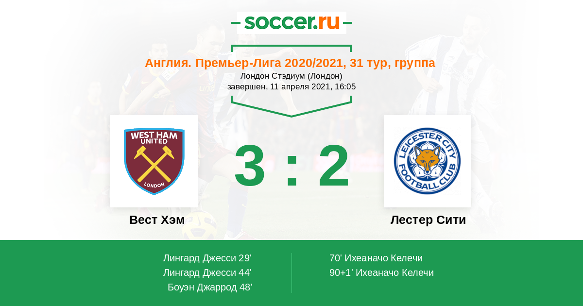 Вест Хэм - Лестер Сити: обзор матча 11 апреля 2021