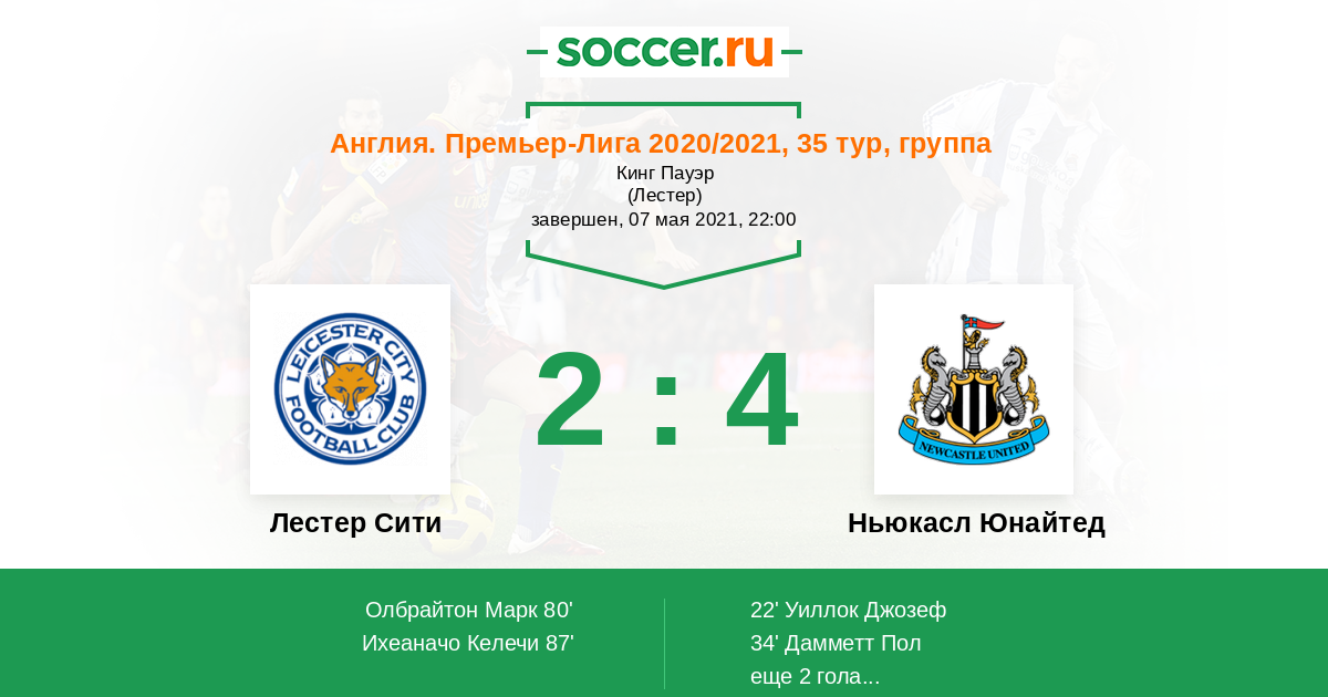 Лестер Сити - Ньюкасл Юнайтед: обзор матча 7 мая 2021