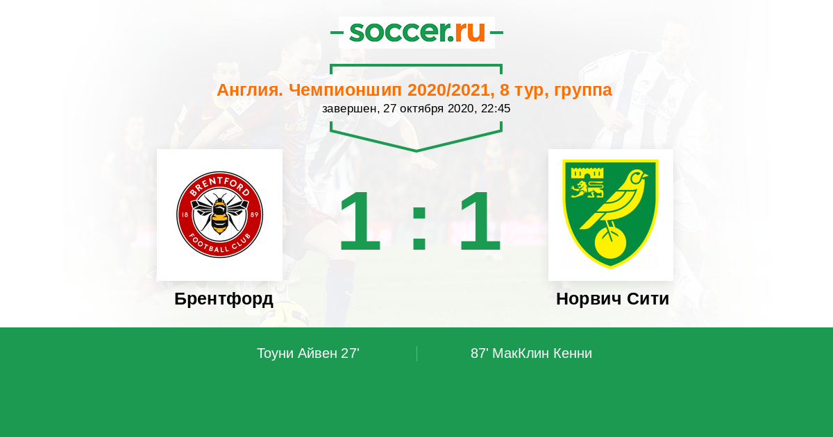 Брентфорд - Норвич Сити: обзор матча 27 октября 2020