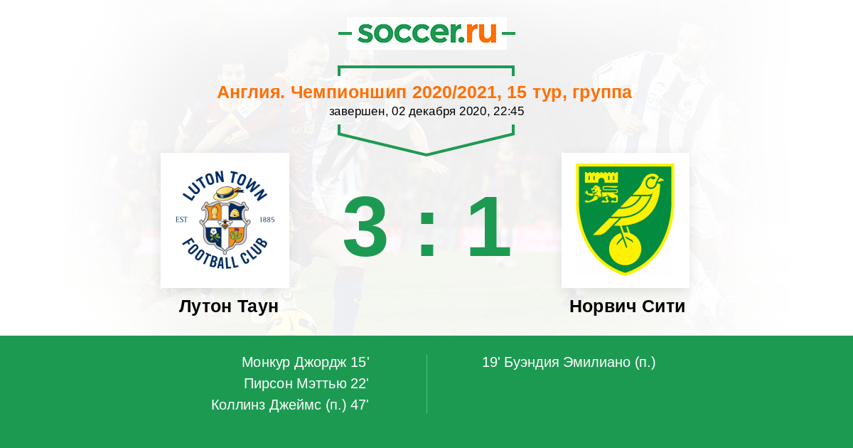 Лутон Таун - Норвич Сити: обзор матча 2 декабря 2020