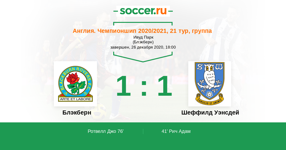 Блэкберн - Шеффилд Уэнсдей: обзор матча 26 декабря 2020