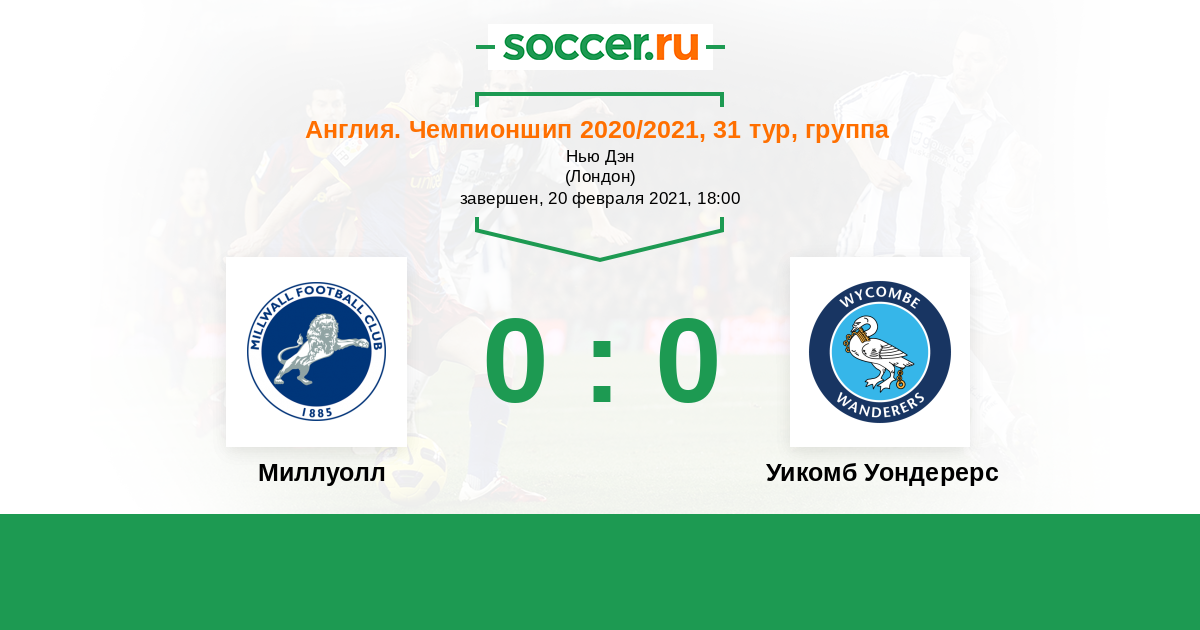 Миллуолл - Уикомб Уондерерс: обзор матча 20 февраля 2021