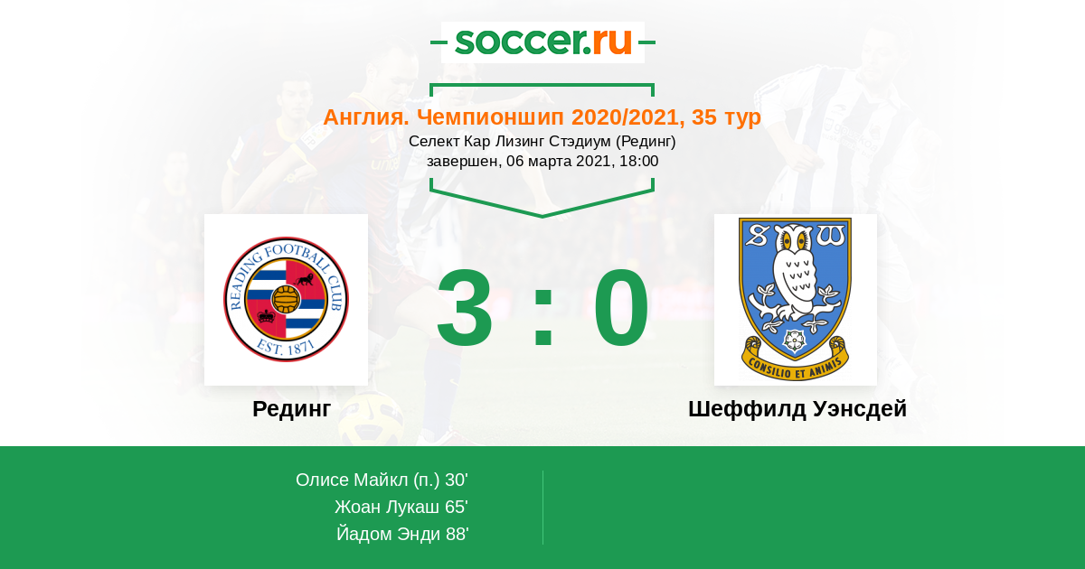 Рединг - Шеффилд Уэнсдей: обзор матча 6 марта 2021