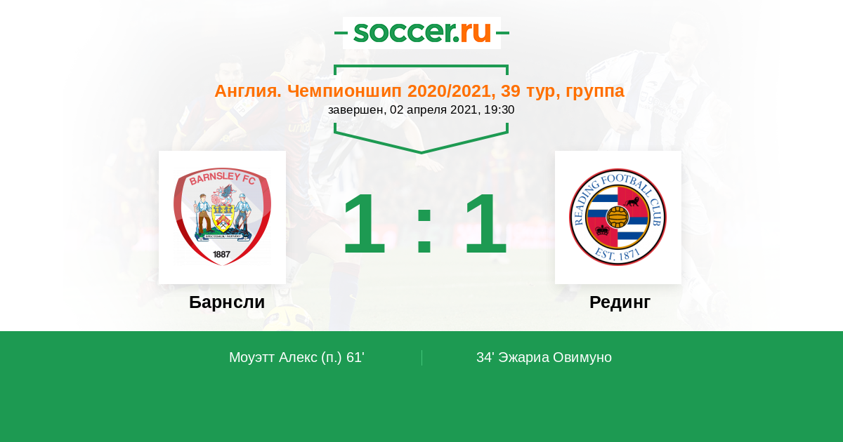 Барнсли - Рединг: обзор матча 2 апреля 2021