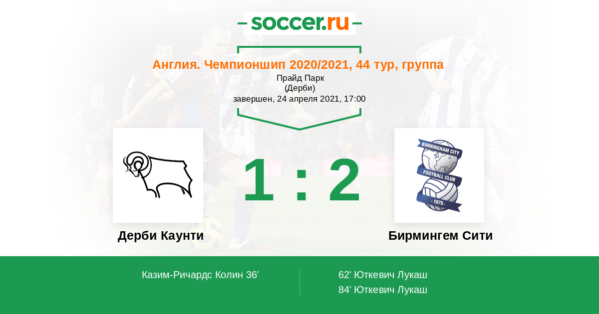 Дерби Каунти - Бирмингем Сити: обзор матча 24 апреля 2021
