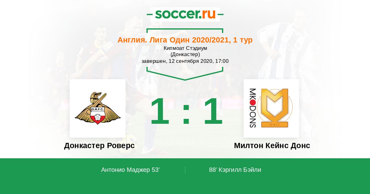 Донкастер Роверс - Милтон Кейнс Донс: обзор матча 12 сентября 2020