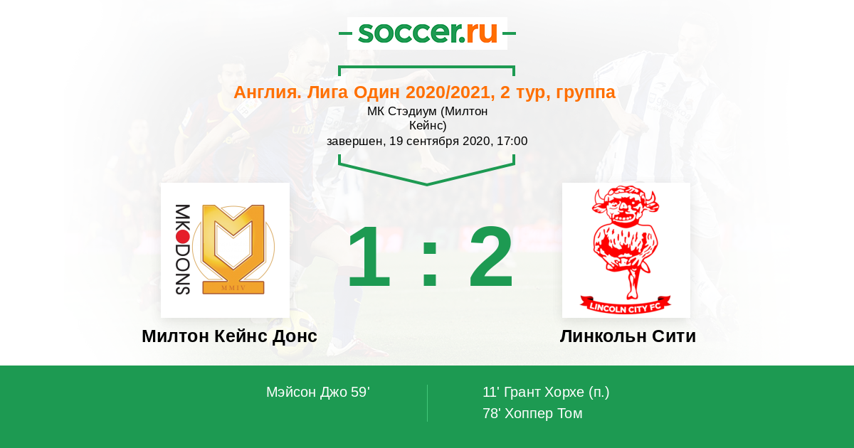 Милтон Кейнс Донс - Линкольн Сити: обзор матча 19 сентября 2020