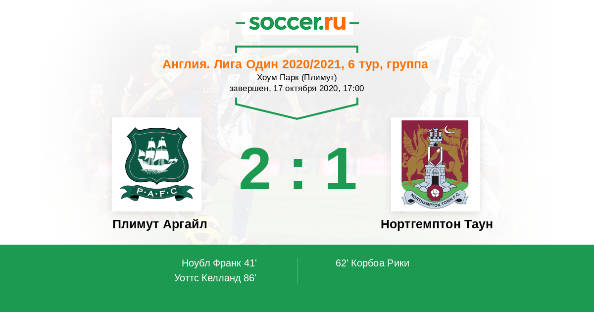 Плимут Аргайл - Нортгемптон Таун: обзор матча 17 октября 2020