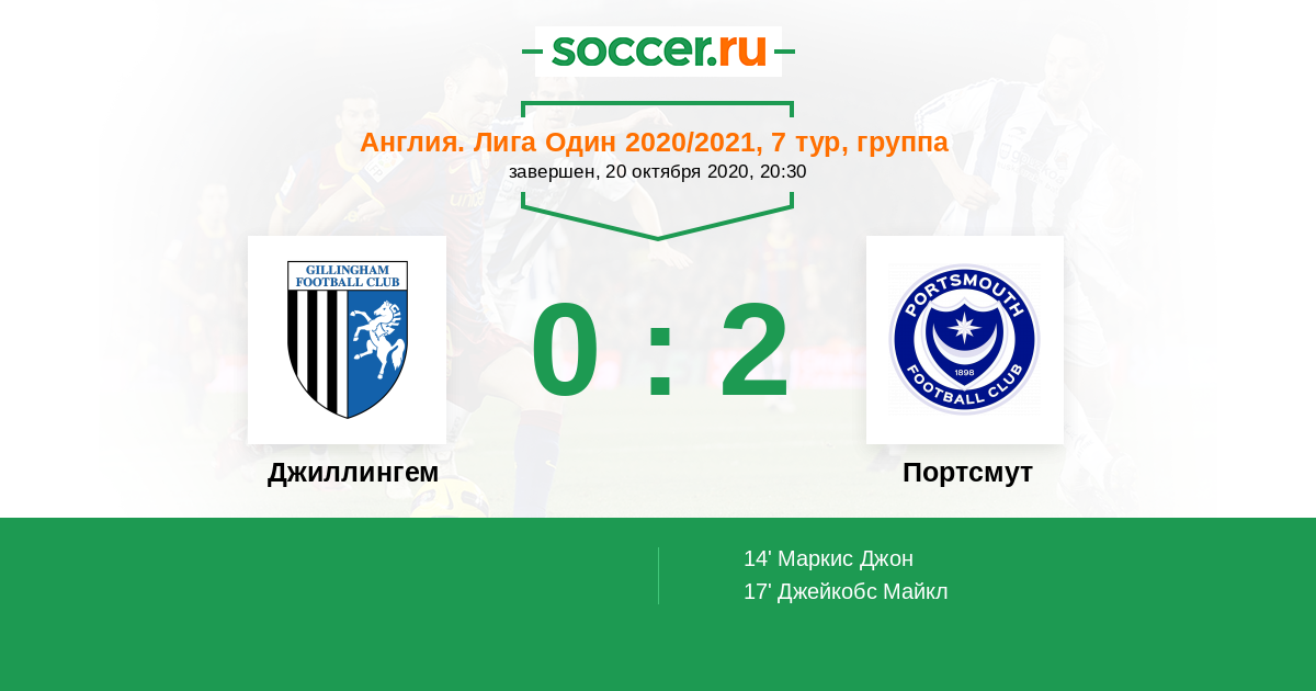 Джиллингем - Портсмут: обзор матча 20 октября 2020