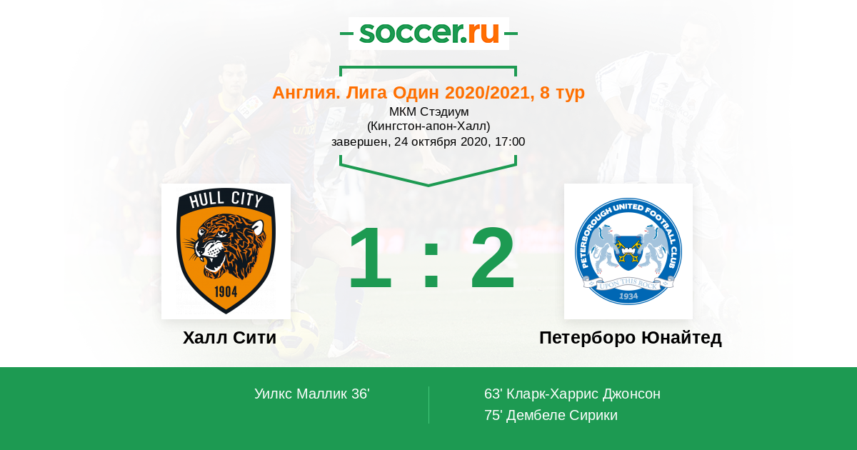 Халл Сити - Петерборо Юнайтед: обзор матча 24 октября 2020