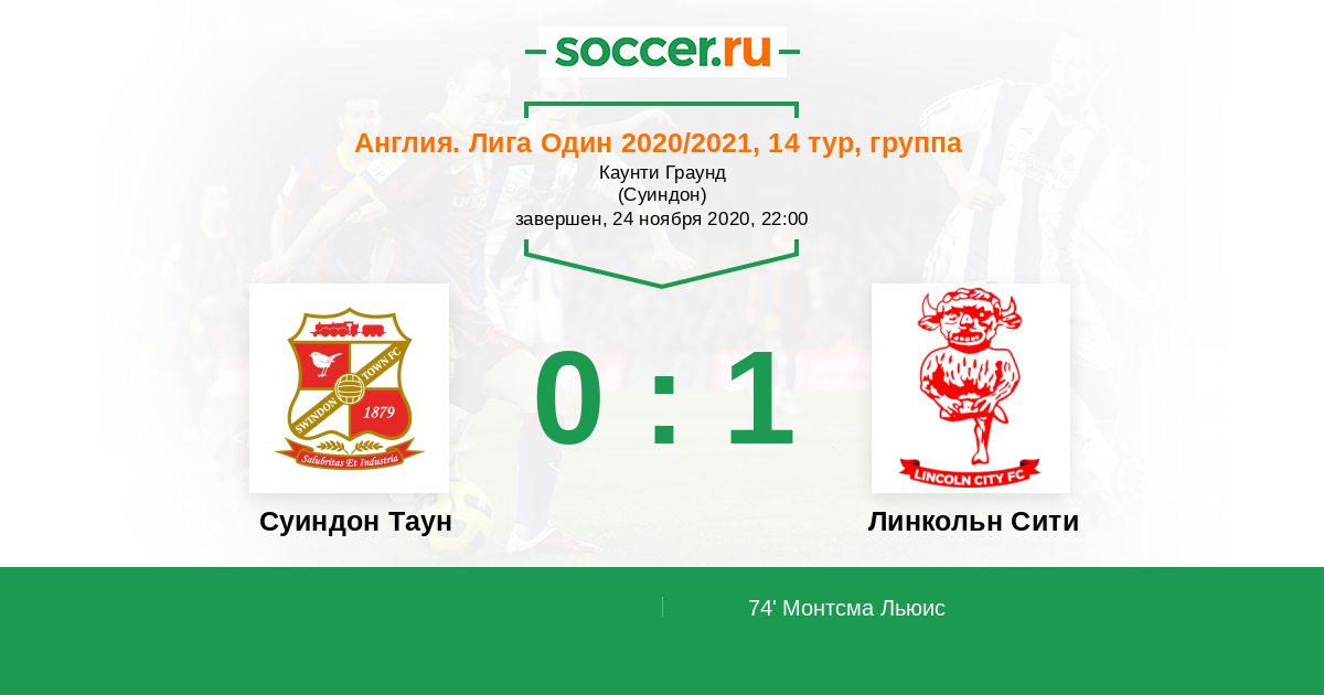 Суиндон Таун - Линкольн Сити: обзор матча 24 ноября 2020
