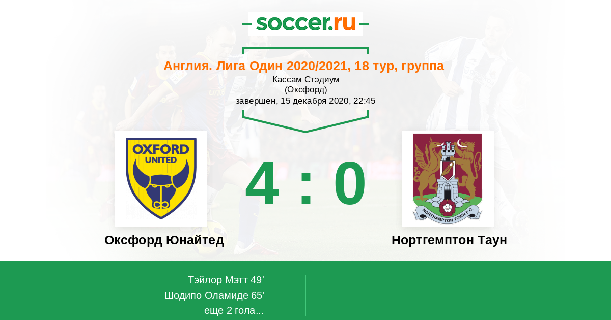 Оксфорд Юнайтед - Нортгемптон Таун: обзор матча 15 декабря 2020