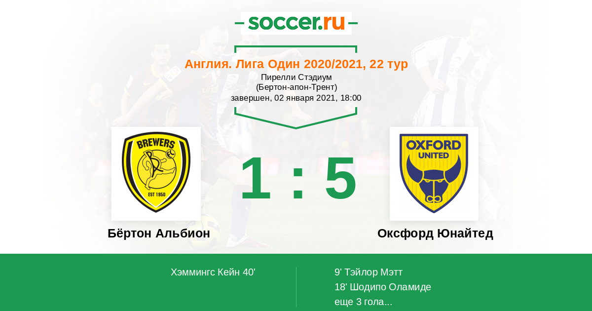 Бёртон Альбион - Оксфорд Юнайтед: обзор матча 2 января 2021