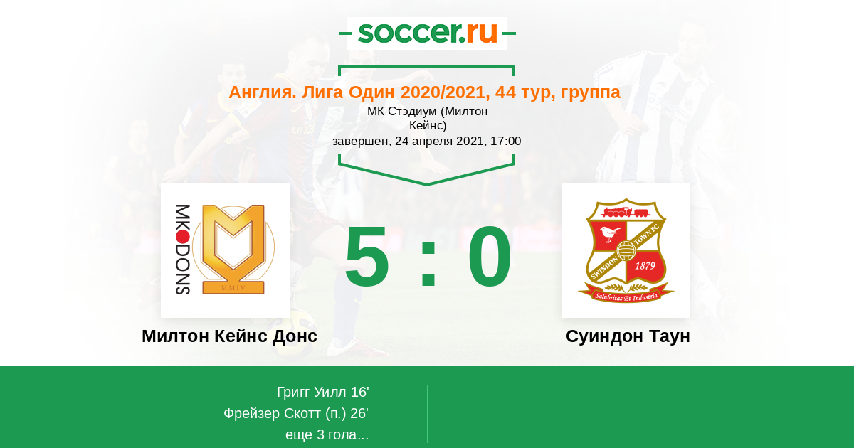 Милтон Кейнс Донс - Суиндон Таун: обзор матча 24 апреля 2021