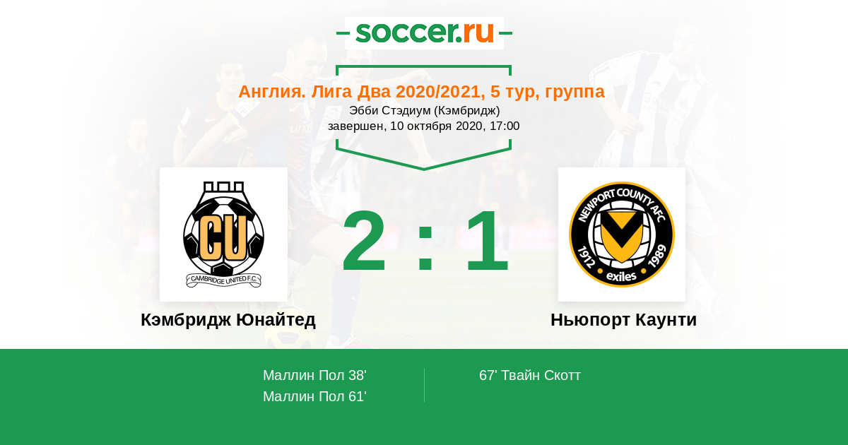 Кэмбридж Юнайтед - Ньюпорт Каунти: обзор матча 10 октября 2020