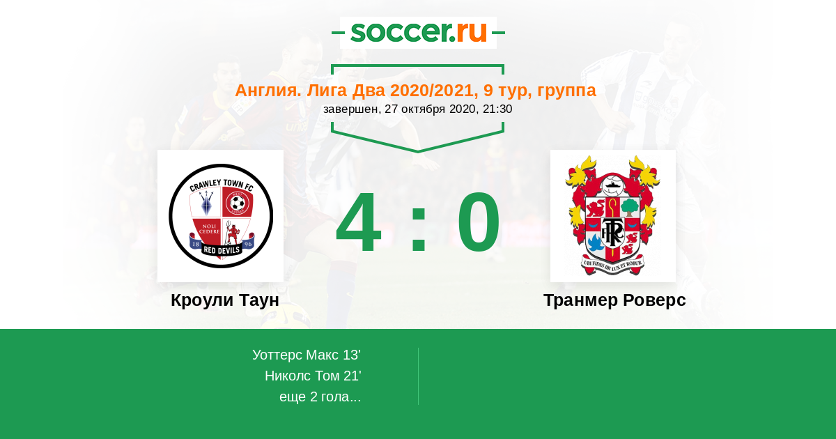 Кроули Таун - Транмер Роверс: обзор матча 27 октября 2020