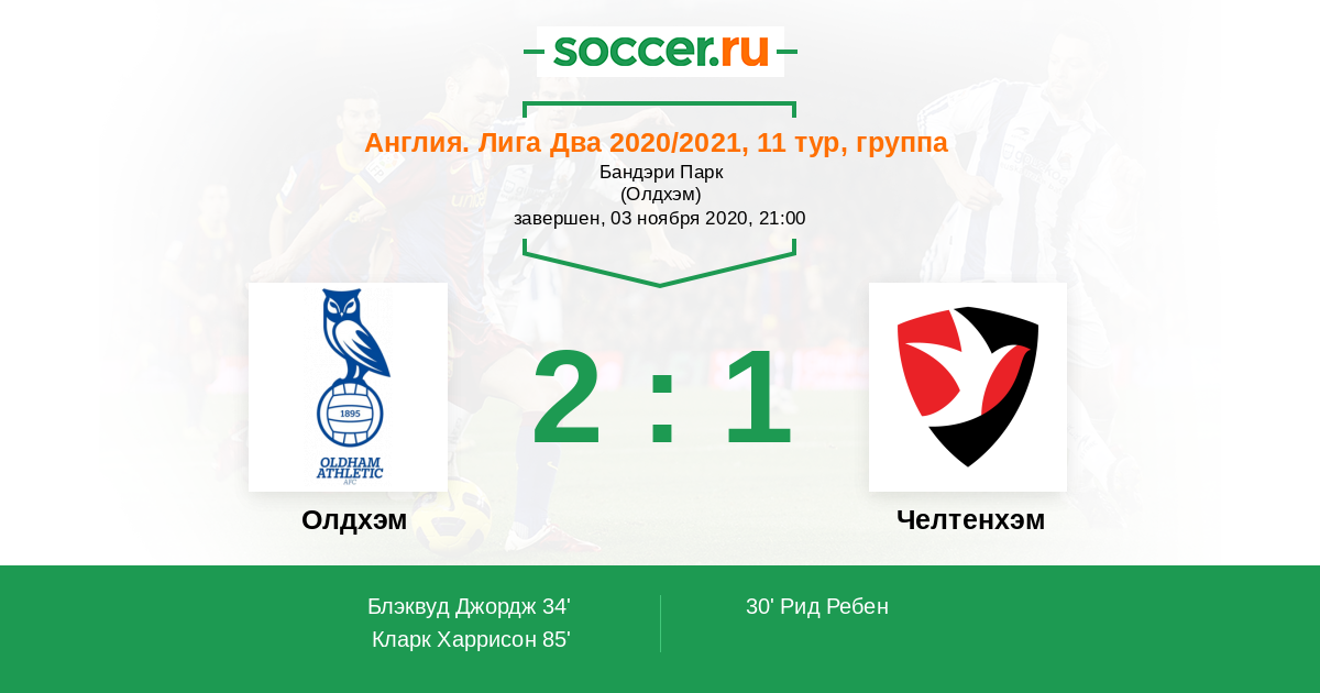Олдхэм - Челтенхэм: обзор матча 3 ноября 2020