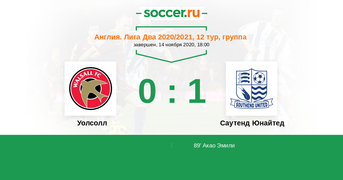 Уолсолл - Саутенд Юнайтед: обзор матча 14 ноября 2020