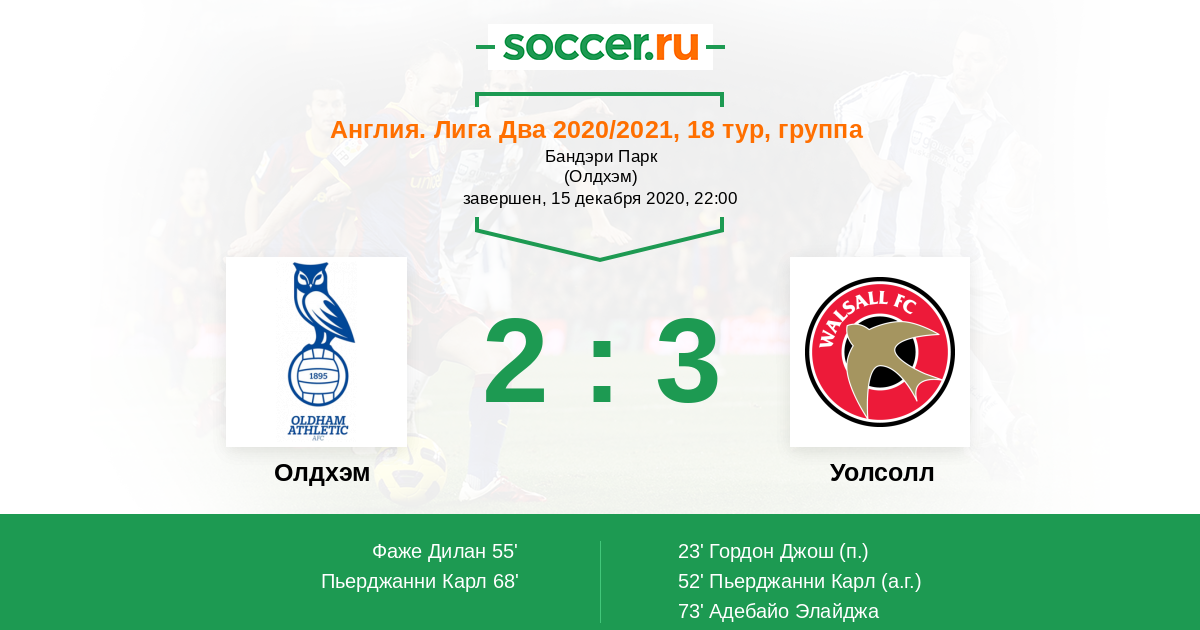 Олдхэм - Уолсолл: обзор матча 15 декабря 2020