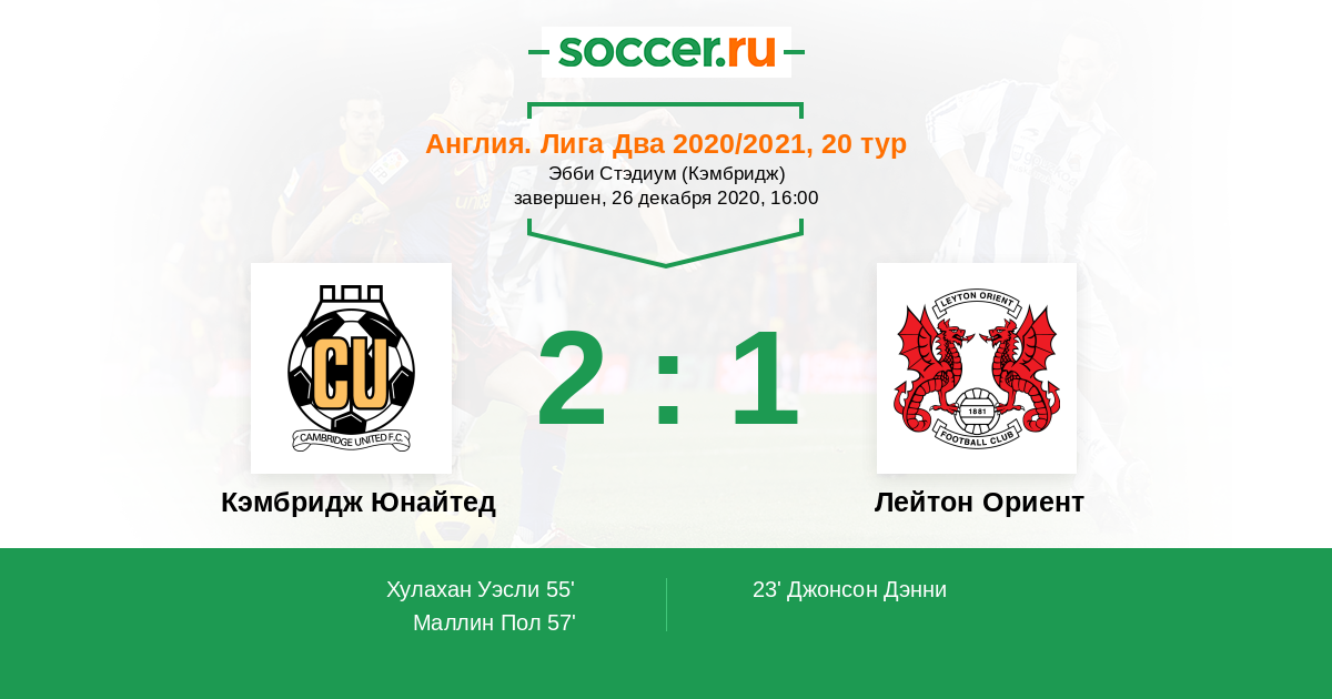Кэмбридж Юнайтед - Лейтон Ориент: обзор матча 26 декабря 2020