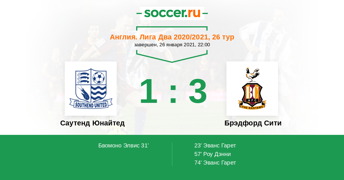 Саутенд Юнайтед - Брэдфорд Сити: обзор матча 26 января 2021
