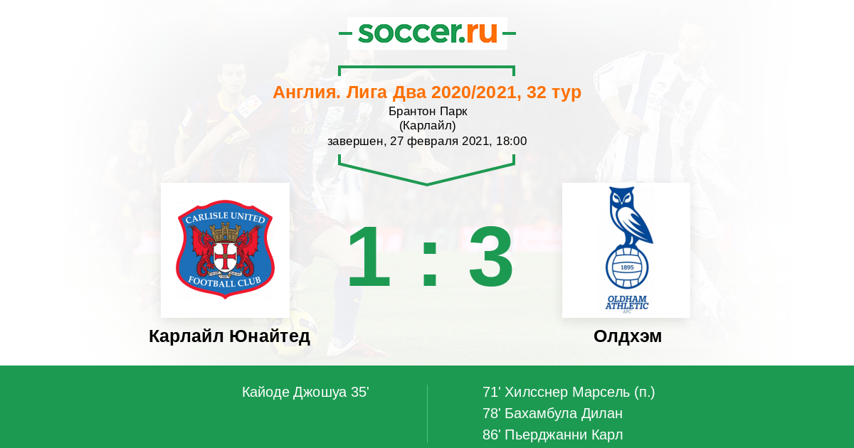 Карлайл Юнайтед - Олдхэм: обзор матча 27 февраля 2021