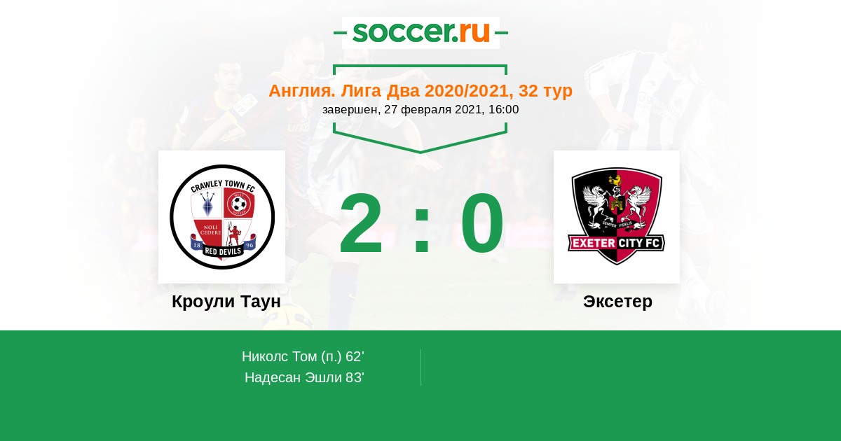 Кроули Таун - Эксетер: обзор матча 27 февраля 2021