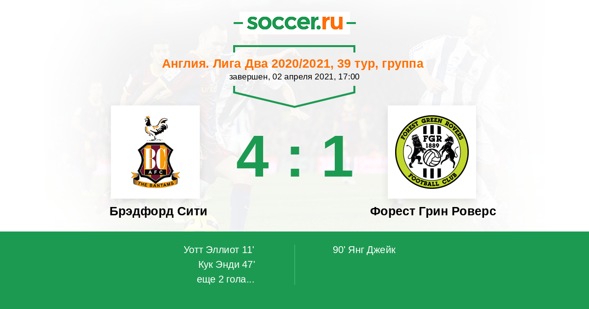 Брэдфорд Сити - Форест Грин Роверс: обзор матча 2 апреля 2021